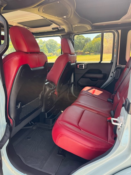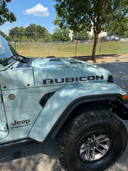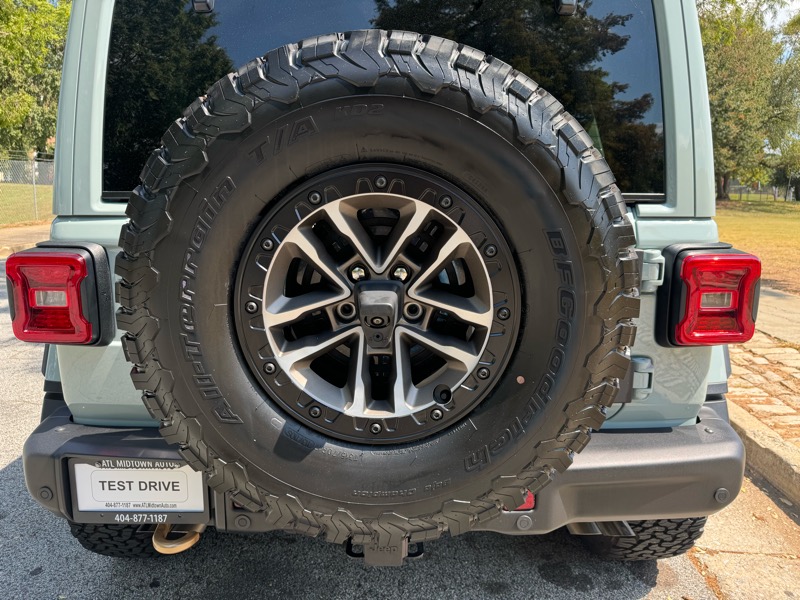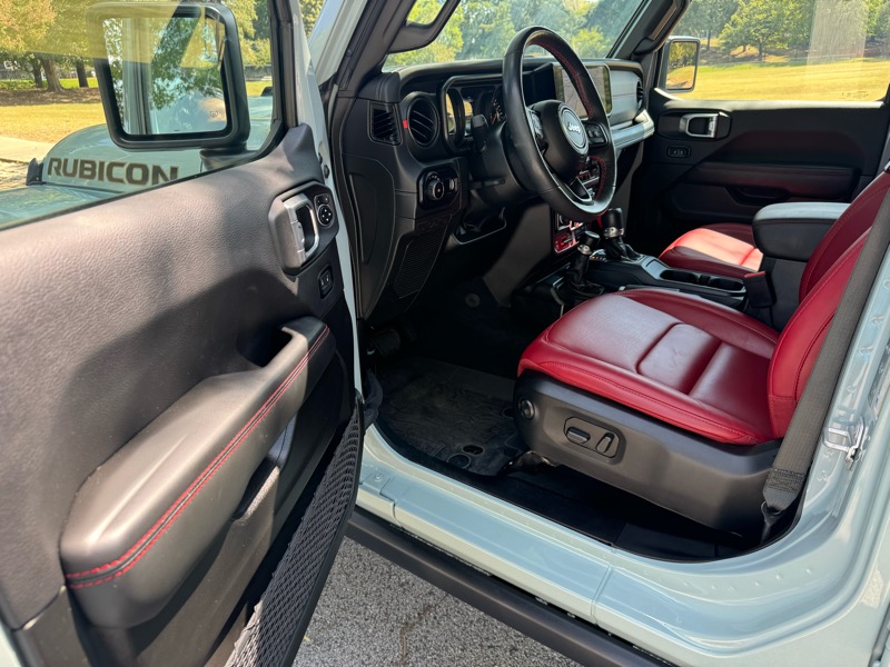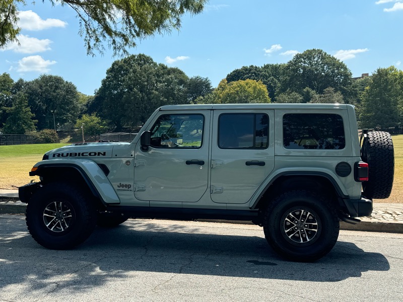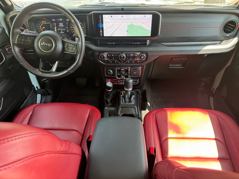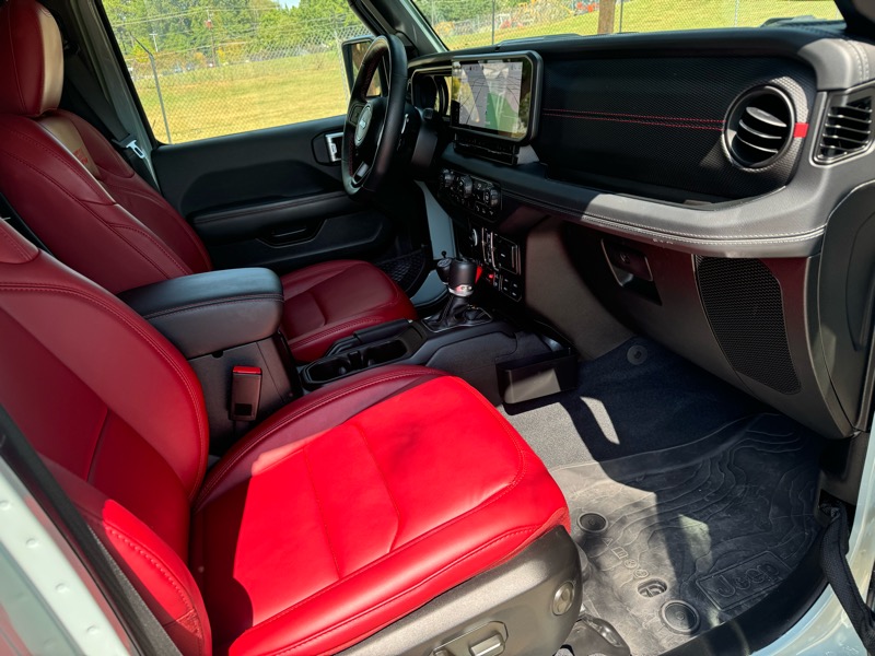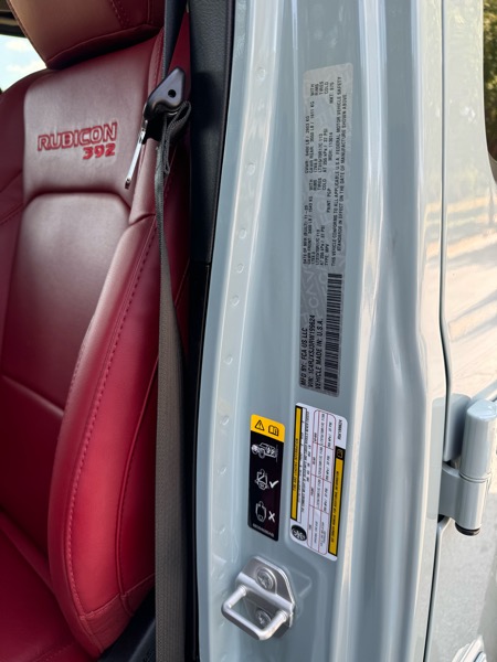 2024 JEEP WRANGLER RUBICON 392. V8 6.4L SRT HEMI ENGINE, FULL TIME 4WD AND 4X4. WARN WINCH. 392 RUBICON SUSPENSION. EARL GREY EXTERIOR, RED LEATHER INTERIOR. BRONZE TOW HOOKS. 4 DOOR. TIRES 35 INCH LT315/70R17. BF GOODRICH ALL TERRAIN TIRES. WHEEL FLARE EXTENSIONS, EXCELLENT CONDITION! UCONNECT 5 NAV 12.3 TOUCH SCREEN DISPLAY. FRONT OFF-ROAD CAMERA, POWER FRONT AND POWER PASSENGER SEATS. LED LIGHTING GROUP, ACTIVE SAFETY GROUP, BLIND SPOT AND CROSS PATH DETECTION, REAR PARK ASSIST SYSTEM, STEEL BUMPER GROUP. STEEL FRONT BUMPER. STEEL REAR BUMPER. TRAILER TOW. PREMIUM ALPINE AUDIO SYSTEM. BODY COLOR HARD TOP. BODY COLOR FENDER FLARES, AUXILLARY SWITCH GROUP, LED HEADLIGHTS. NAVIGATION, BACKUP CAMERA, APPLE CARPLAY. ANDROID PLAY. TRAIL OFF ROAD APP. OFF ROAD PLUS MODE. LEATHER SEATS, REMOTE START SYSTEM, POWER WINDOWS, POWER LOCKS, XTREME RECON PACKAGE. HINGE GATE REINFORCEMENT BY MOPAR. DOORS-OFF MIRROR KIT BY MOPAR. ALL WEATHER MATS, GORILLA GLASS WINDSHIELD, SECURE SAFETY HOOD LOCKS AND WHEEL LOCKS ON JEEP. 2 KEYS AND BOOKS! JEEP STILL UNDER JEEP WARRANTY FOR ESTIMATED REMAINING 14 MONTHS OR 24K MILES. REMAINING DRIVETRAIN ENGINE AND TRANSMISSION WARRANTY FOR ESTIMATE 38 MONTHS OR 48K MILES REMAINING. EXCELLENT CONDITION!