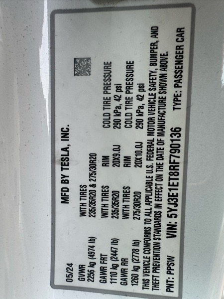2024 TESLA MODEL 3. PERFORMANCE. DUAL MOTOR, AWD. WHITE EXTERIOR. BLACK INTERIOR. 20" WARP PERFORMANCE WHEELS. RED BRAKE CALIPERS. ACCENT AMBIENT INTERIOR COLORFUL LIGHTS. REAR SPOILER. INSANE ACCELERATION. FULL SELF DRIVING COMPUTER 4 WITH AUTOPILOT CAPABILITY INCLUDED. REAR TV. NAVIGATION, LEATHER, HEATED SEATS, COLD WEATHER PACKAGE, BACKUP CAMERA. TESLA MODEL 3 IS STILL UNDER TESLA WARRANTY. EXCELLENT CONDITION!