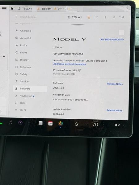 2026 TESLA MODEL Y. DIAMOND BLACK EXTERIOR, BLACK INTERIOR. FULL SELF DRIVING COMPUTER 4 WITH AUTOPILOT INCLUDED. NAVIGATION, LEATHER TRIM, HEATED SEATS, BACKUP CAMERA. TESLA IS STILL UNDER TESLA WARRANTY. TESLA WARRANTY EXPIRES DEC 28, 2029 OR 50,000 MILES; WHICHEVER COMES FIRST. BATTERY WARRANTY EXPIRES DEC 28, 2033 OR 100,000 MILES; WHICHEVER COMES FIRST. EXCELLENT CONDITION!